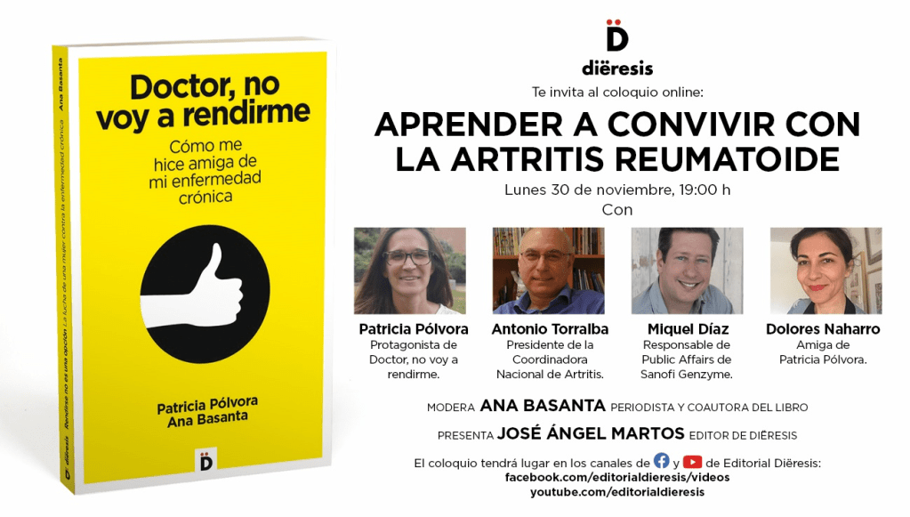 Bajo el título «Aprender a convivir con la Artritis Reumaotide«, el próximo lunes 30 de noviembre a las 19 horas la editorial Diëresis ha organizado un coloquio sobre cómo vivir con esta enfermedad crónica que causa dolor severo e inflamación en las articulaciones.