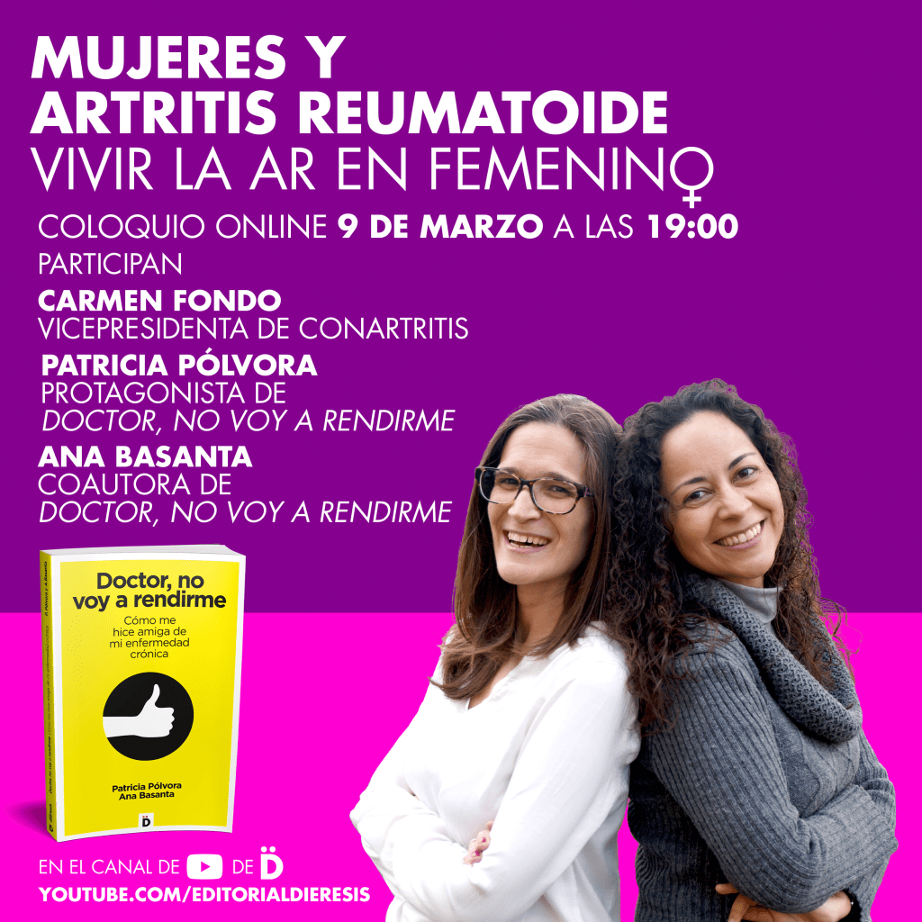 Con motivo del Día Internacional de la Mujer el 8 de marzo, al día siguiente, martes día 9, a las 19 horas, tiene lugar el coloquio «Mujeres y Artritis Reumatoide» para visibilizar el día a día de esta enfermedad crónica.