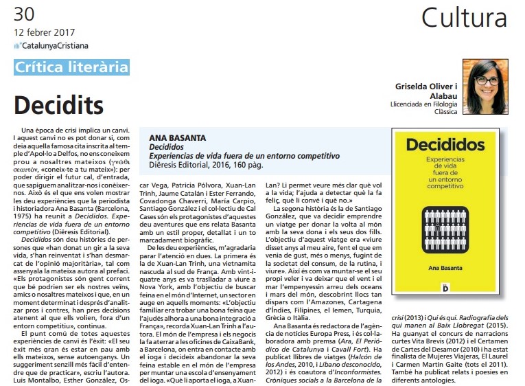 BISBAT D’URGELL – Presentació del llibre «Decididos» d’Ana Basanta
